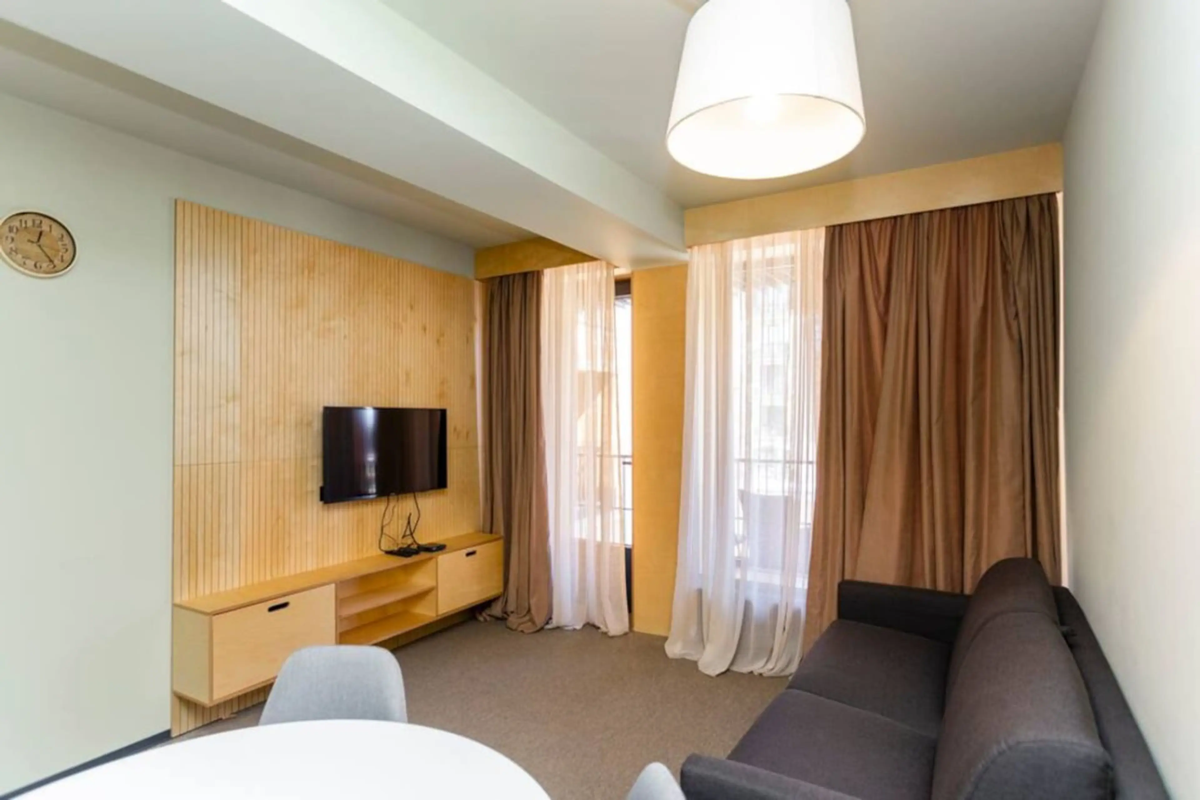 1BR apartment is located in Bakuriani, few minutes away from Mt. Kokhta gora, markets, cafes, parks, pharmacies and more... The apartment has a fully equipped kitchen and bathroom a bedroom with a king size bed and a furnished balcony. The place is perfect for small groups of friends, families and ...